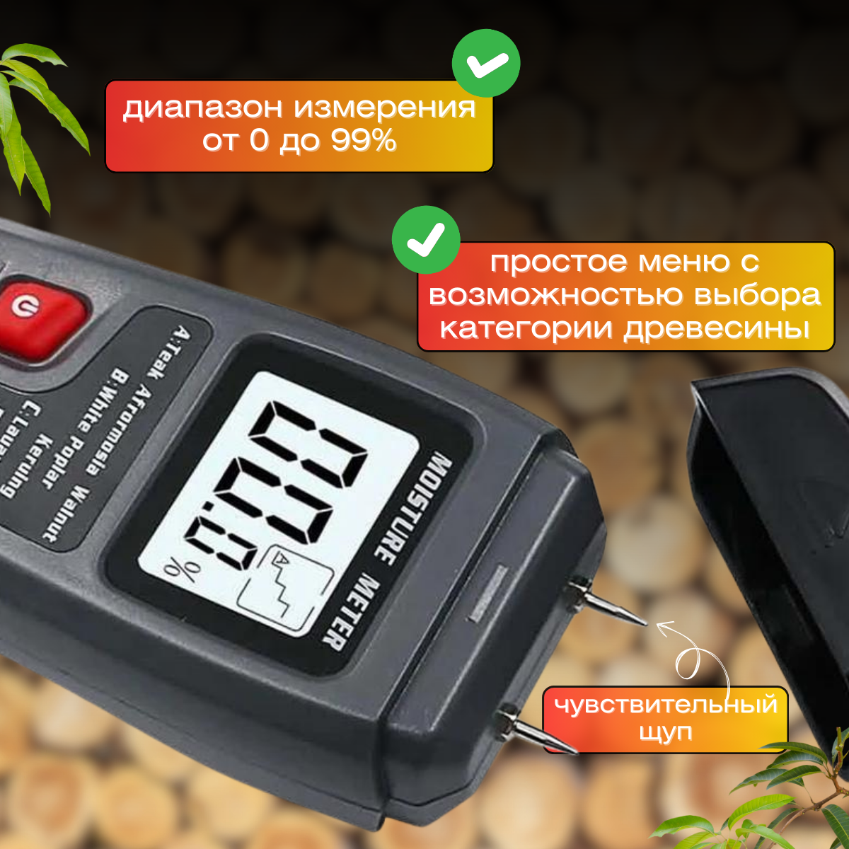 Измеритель влажности древесины - цифровой тестер MOISTURE METER / Гигрометр, влагомер, техметр дерева