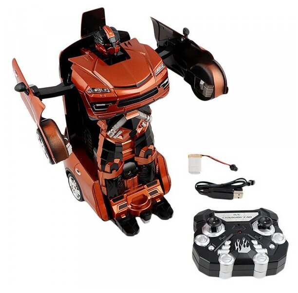1toy Робот на р/у 2,4GHz, трансформирующийся в машину, оранжевый