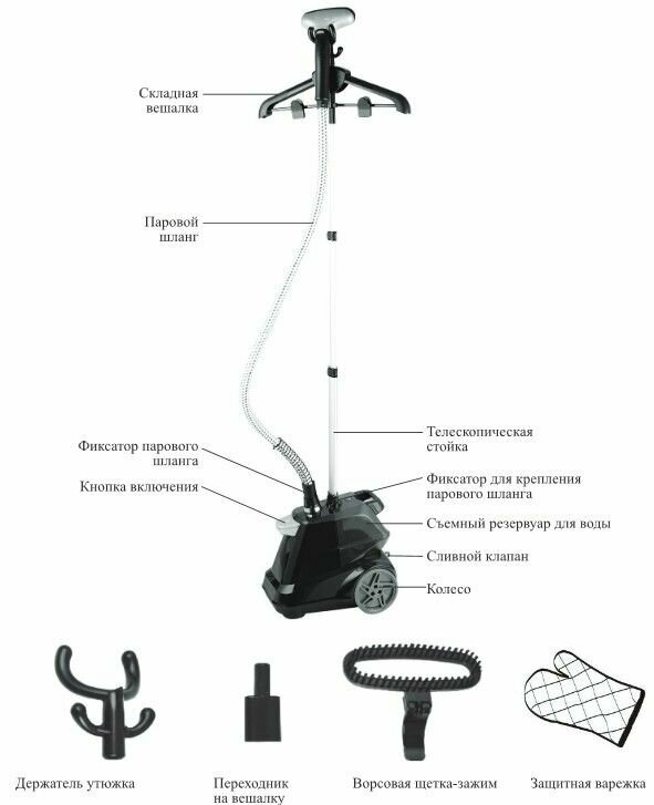 | Особенности конструкции | съемный резервуар для воды, телескопическая стойка |