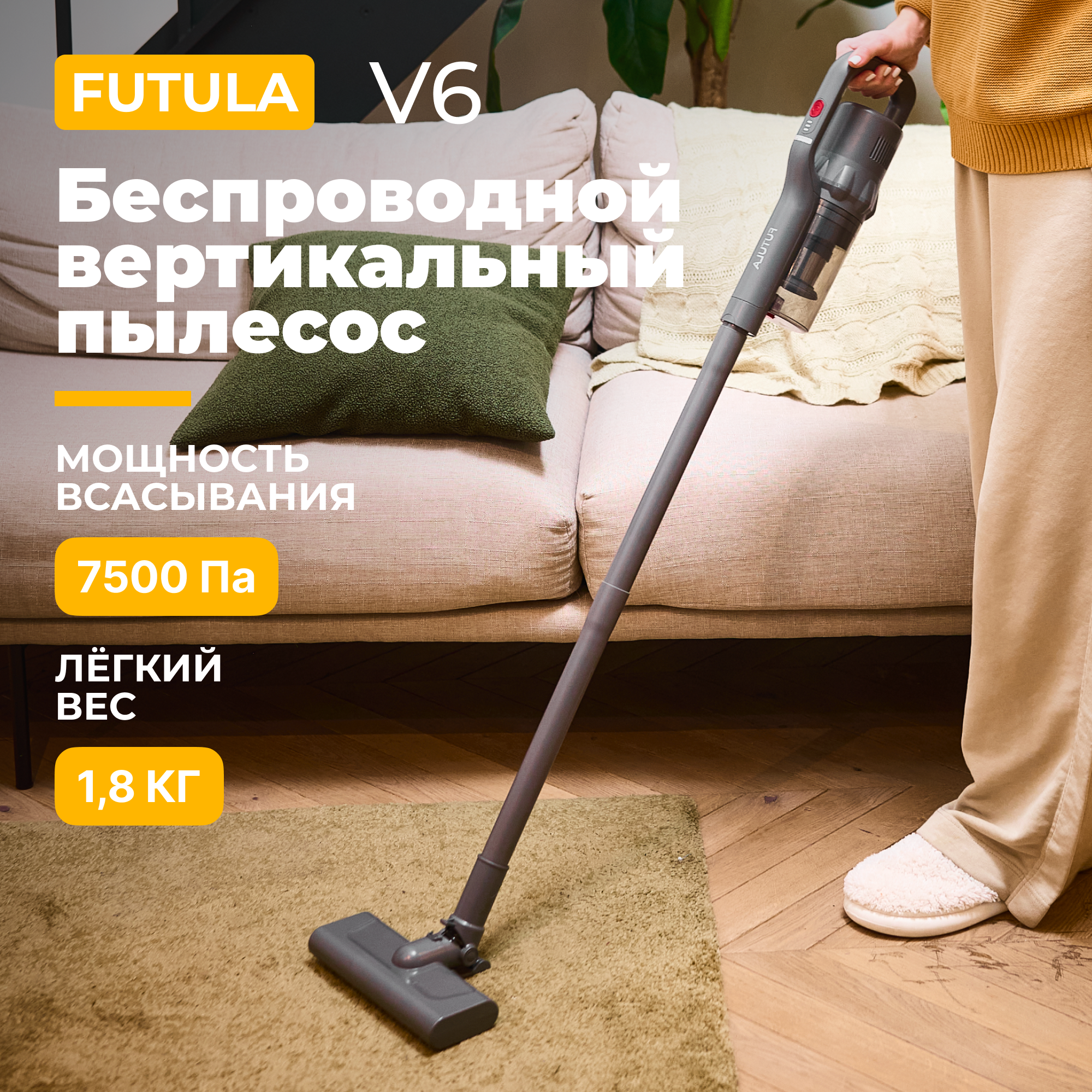 Пылесос для дома Futula V6, серый, вертикальный, аккумуляторный с Hepa фильтром