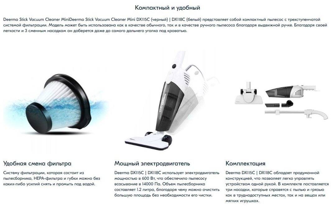 Пылесос deerma Vacuum Cleaner DX118C Gray+White интересное: