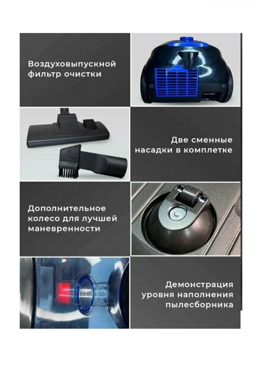 Пылесос,тихий бытовой пылесос,компактный передвижной пылесос, для дома,офиса,2200Вт, 1.5л пылесборник,шнур 4 м,синий,домашний интересное: