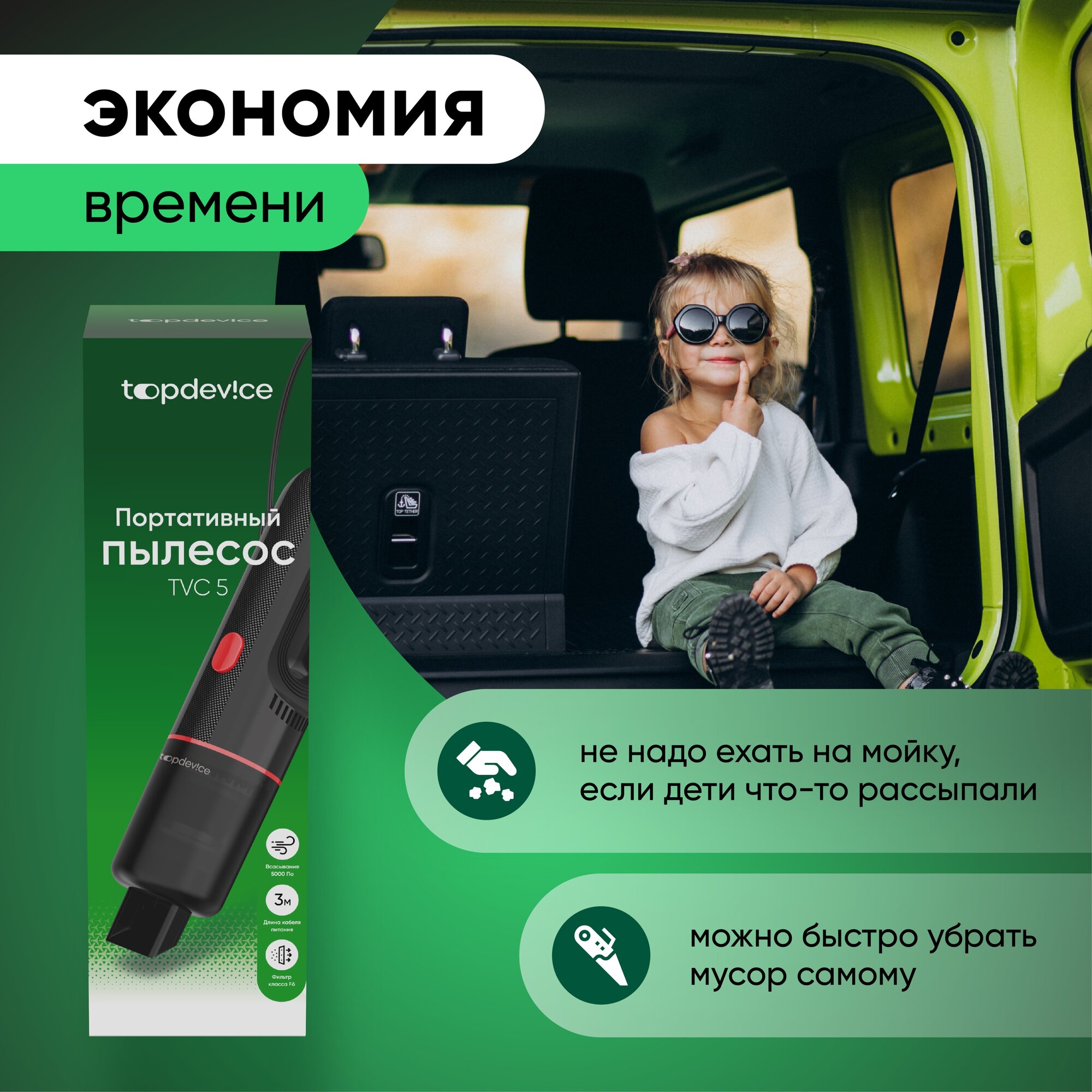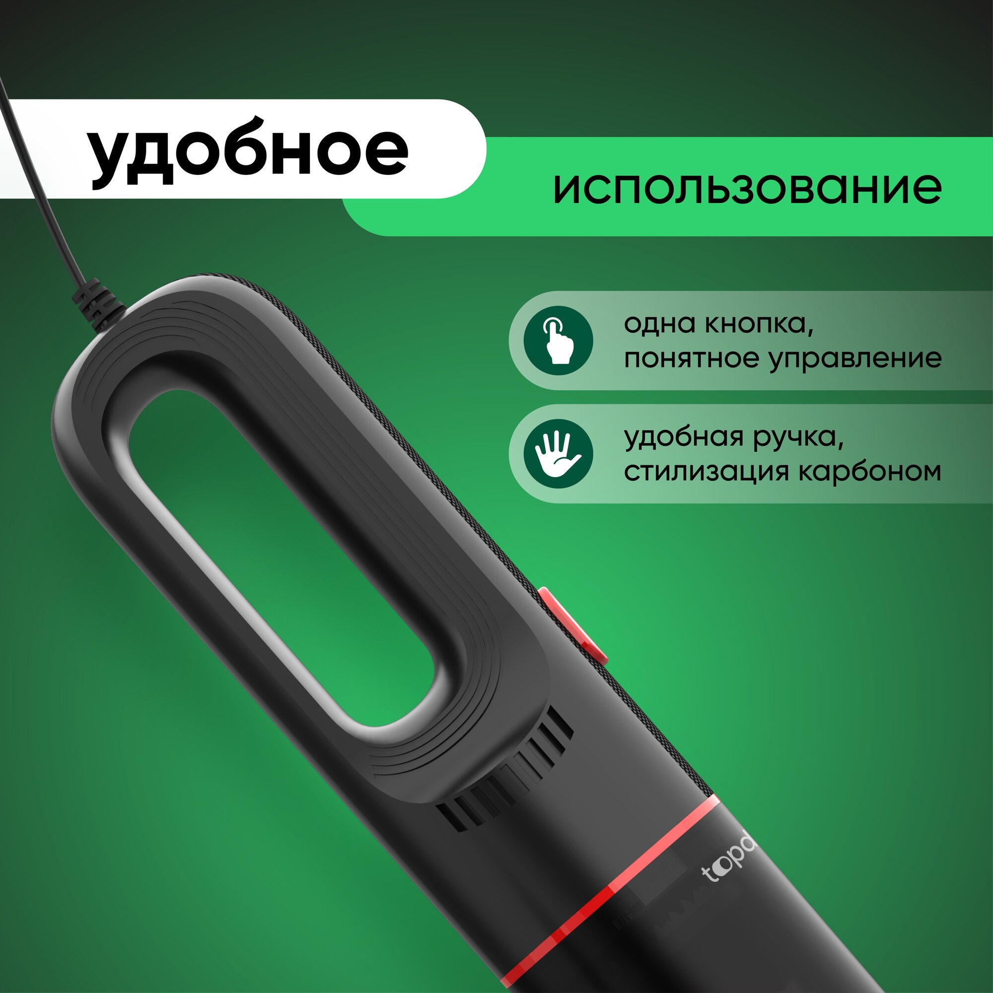 Пылесос автомобильный проводной Topdevice TVC5BK, 5000 Па, 65 Вт, длина шнура 3 м интересное: