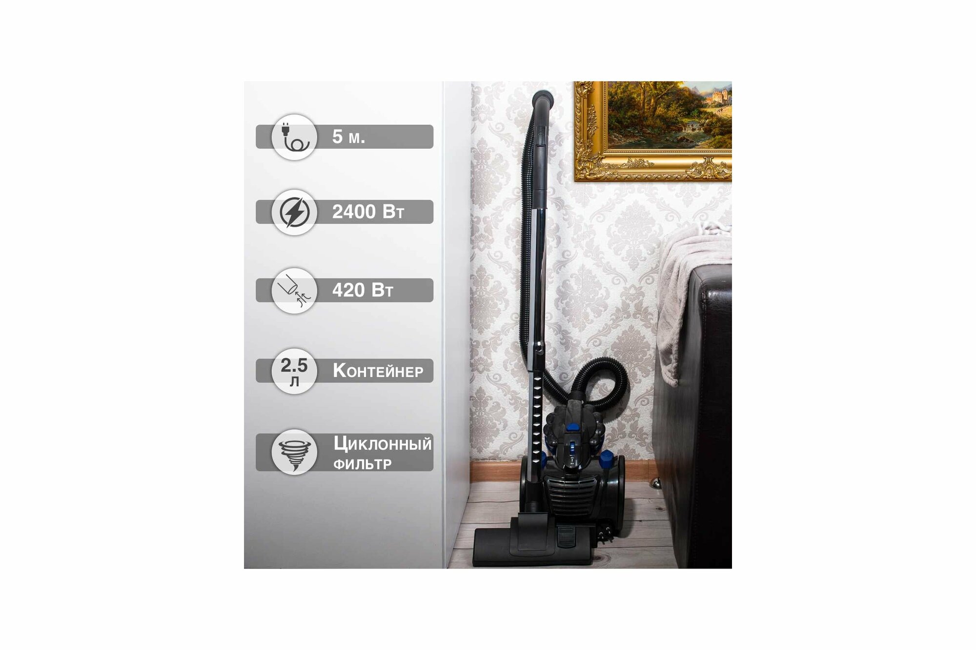 Пылесос KELLI KL-8005 2400 Вт, синий интересное: