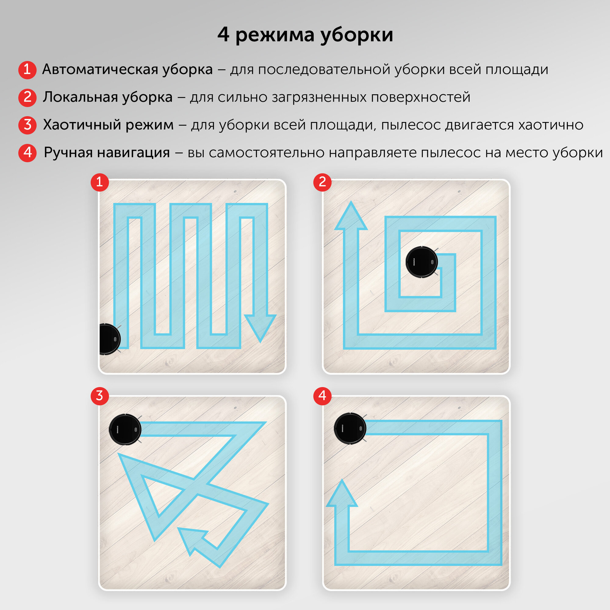 Робот-пылесос Starwind SRV3950, 1500 мАч, 4 режима, черный/черный