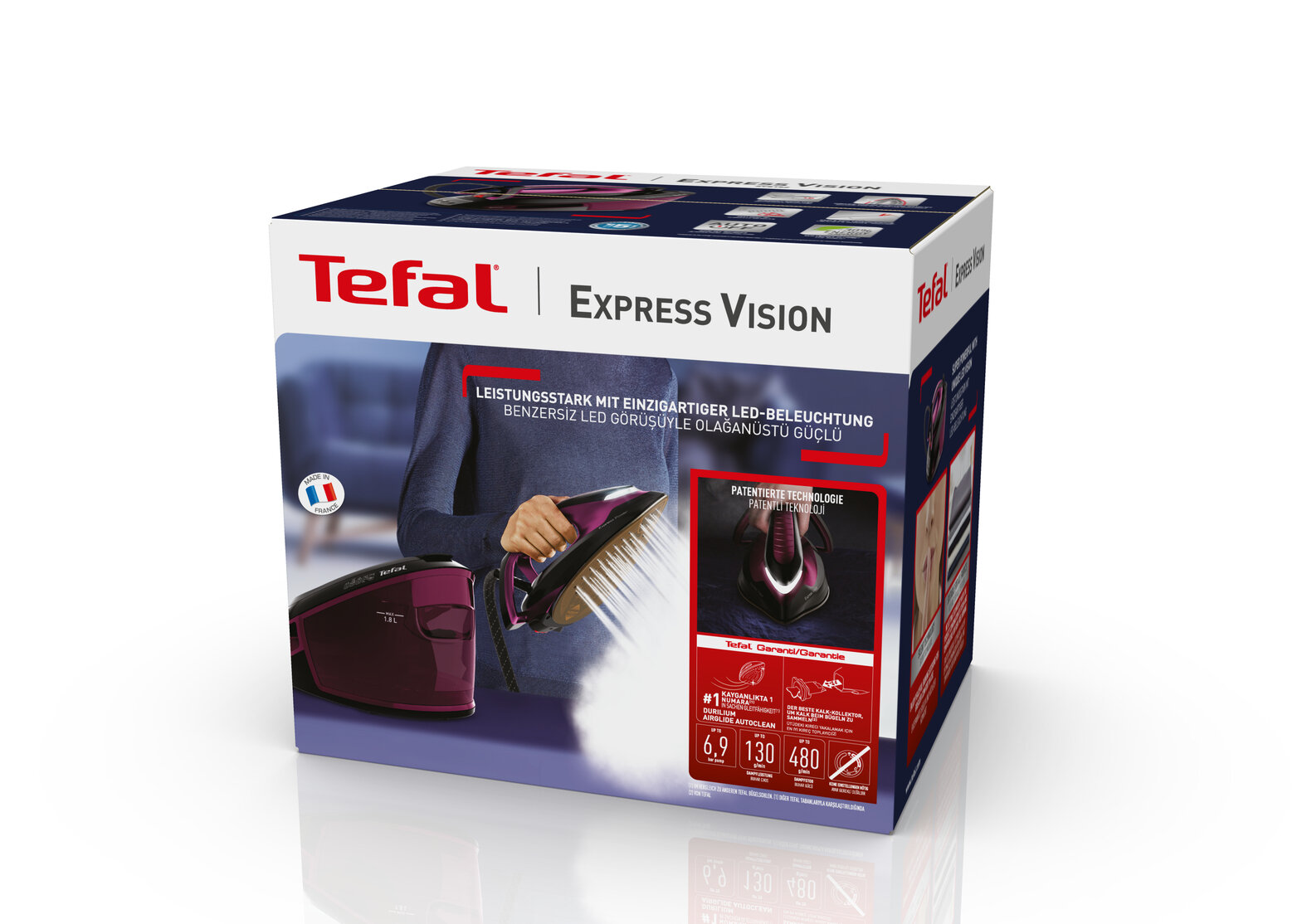 | Дополнительная информация | подошва Durilium Airglide Autoclean, Светодиодная подсветка на носике утюга, включается автоматически, когда утюг находится в горизонтальном положении |