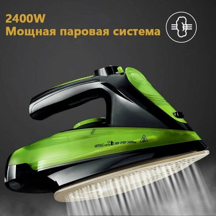 Утюг/Утюг качественный/Беспроводной/Качественный/Мощный 2400Вт/Зеленый