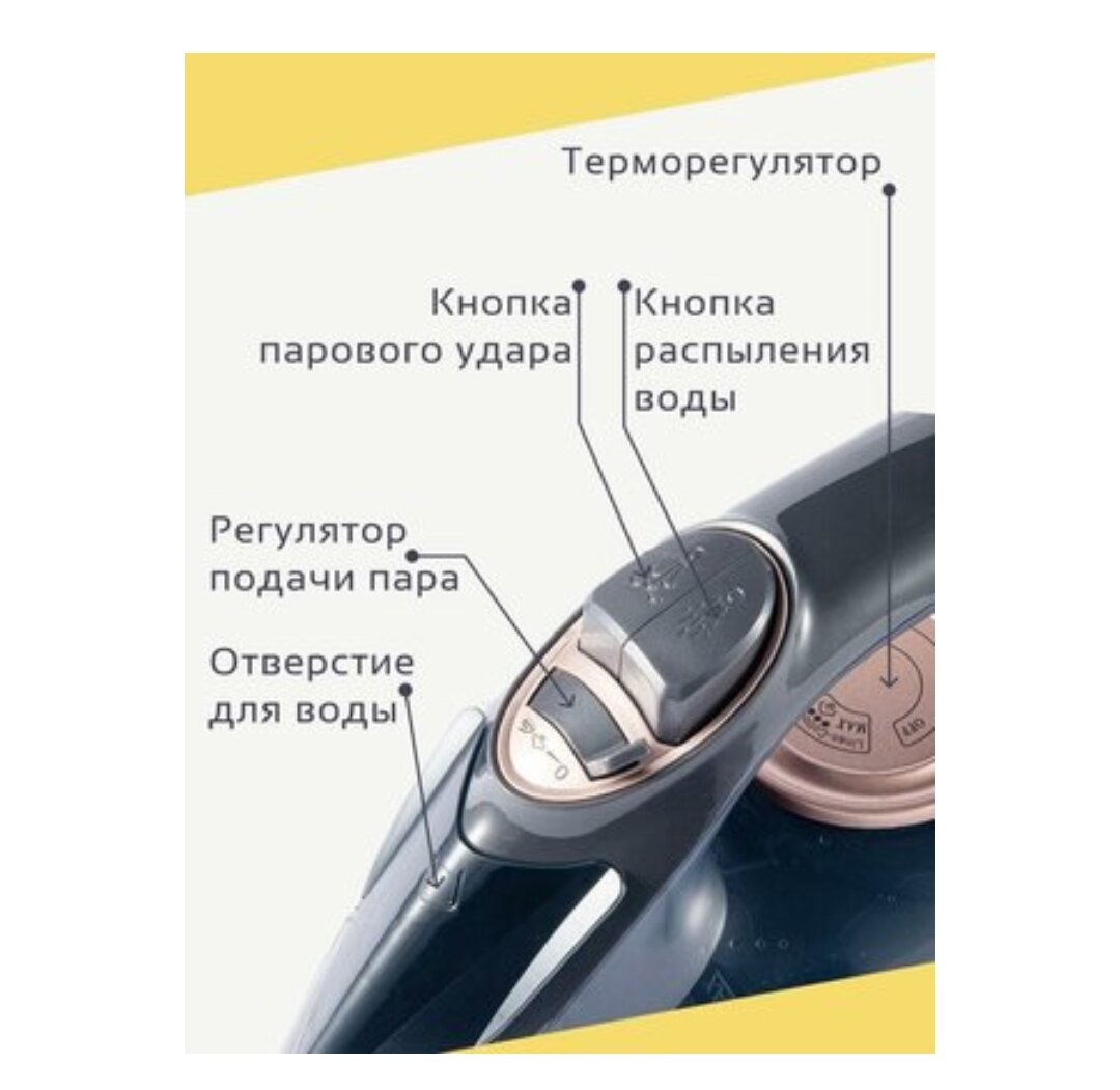 | Особенности | желобок для пуговиц / шаровое крепление шнура / Вертикальное отпаривание / Горизонтальное отпаривание / Дозалив воды / Защита от накипи / Противокапельная система / Распылитель для воды / Функция самоочистки |