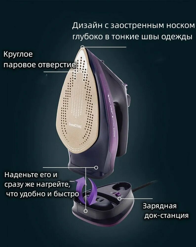 Утюг/Утюг качественный/Беспроводной/Качественный/Мощный 2400Вт/SOKANY AJ-2085/Фиолетовый интересное: