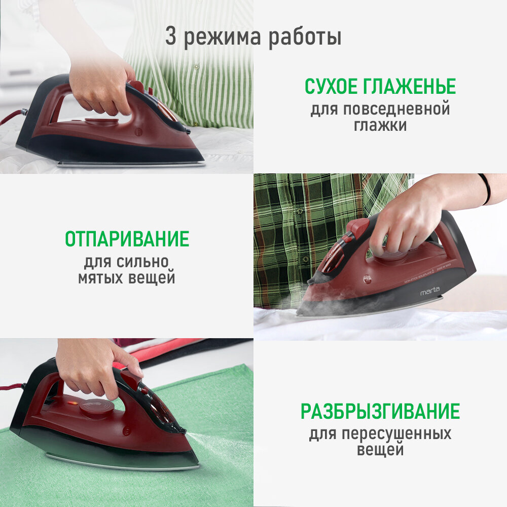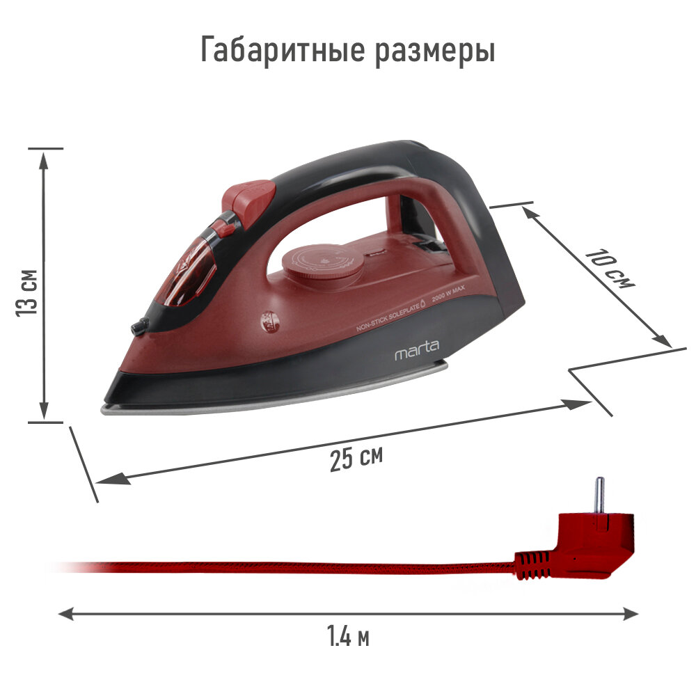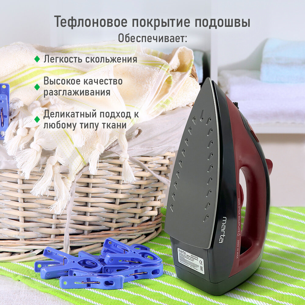 Утюг MARTA MT-1148 бордовый гранат интересное: