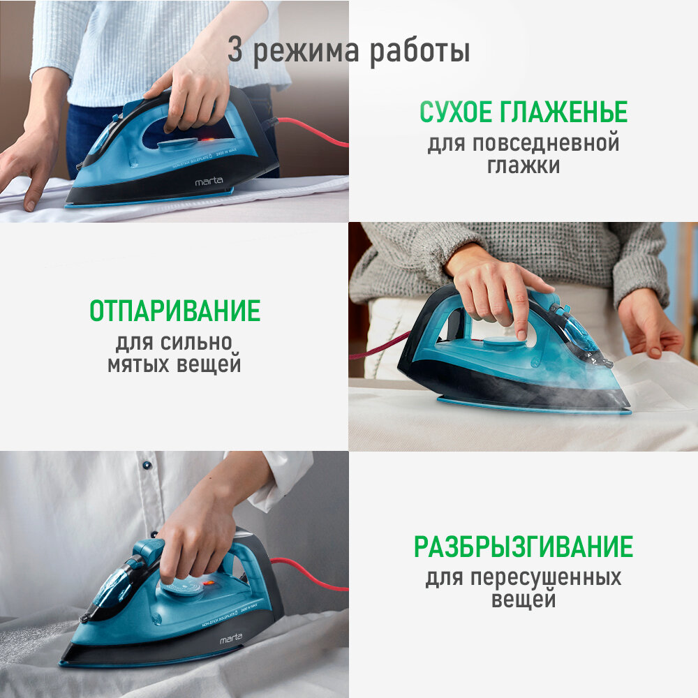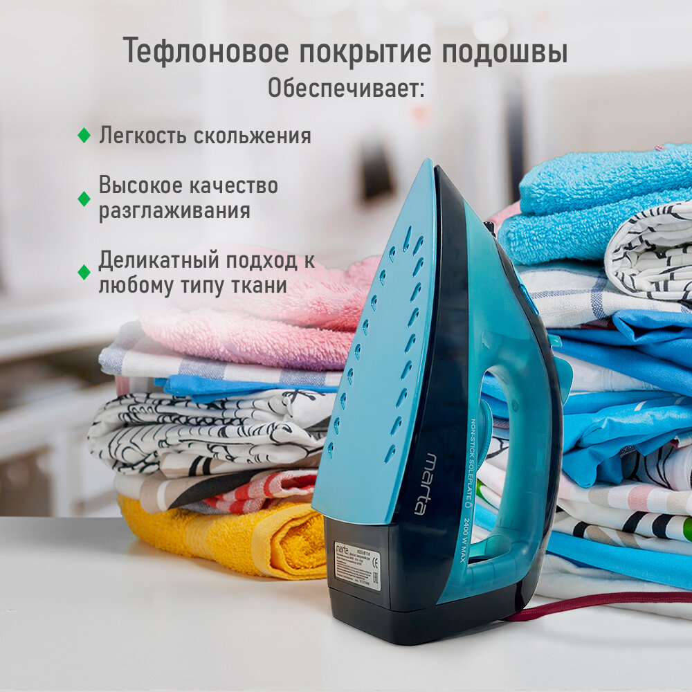 Утюг MARTA MT-1149 NEW голубая бирюза интересное: