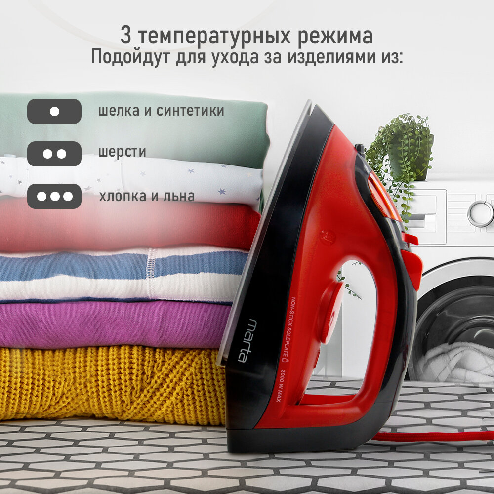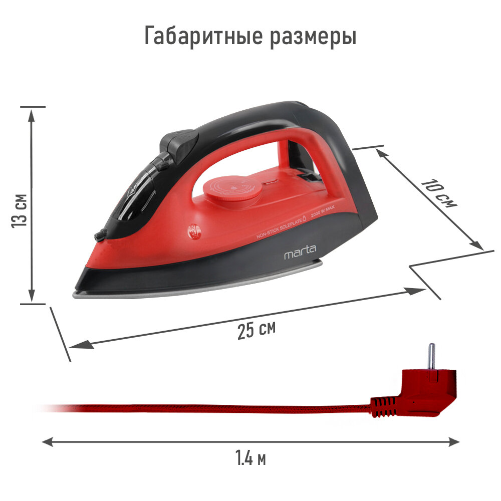 Утюг MARTA MT-1148 красный рубин интересное: