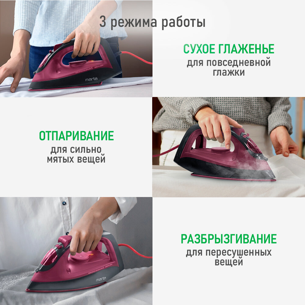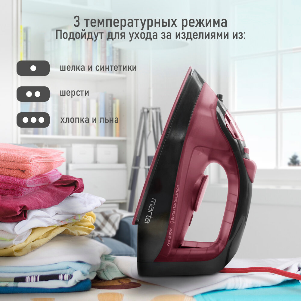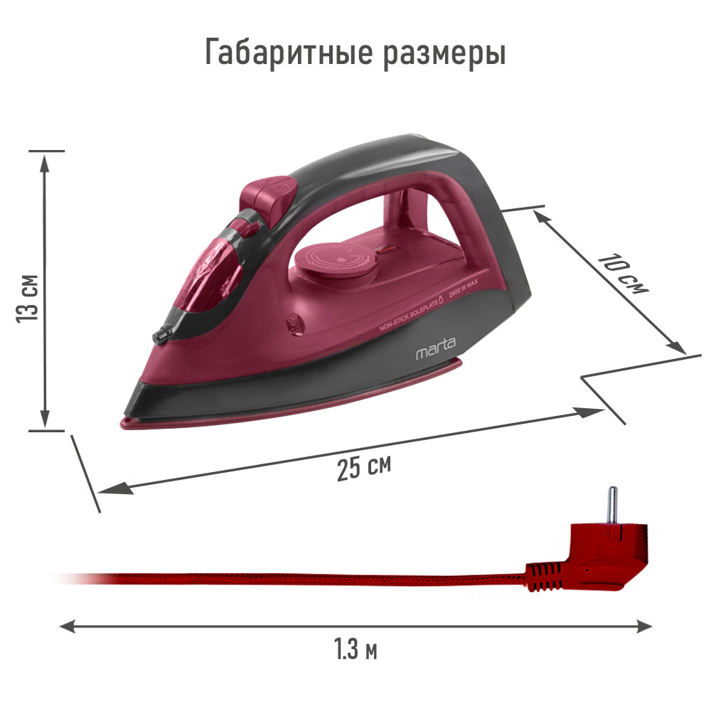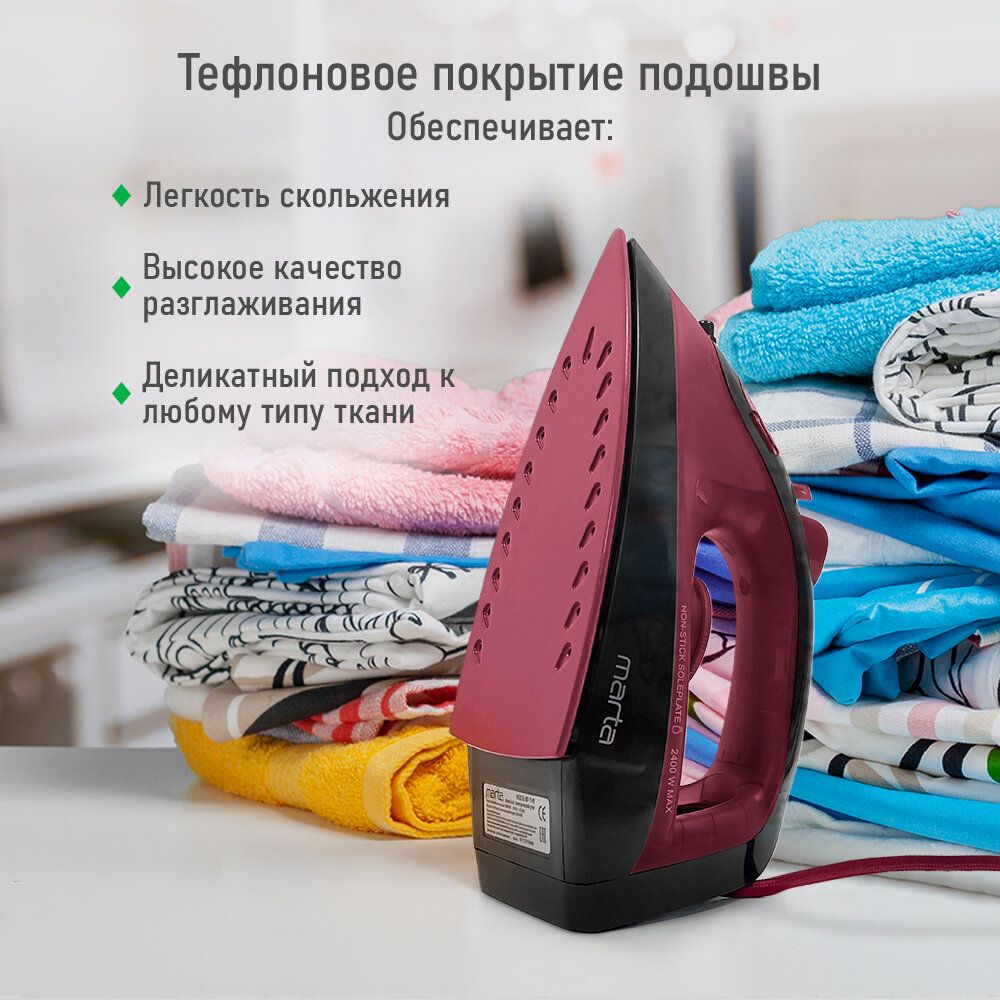 Утюг MARTA MT-1149 NEW бордовый гранат интересное: