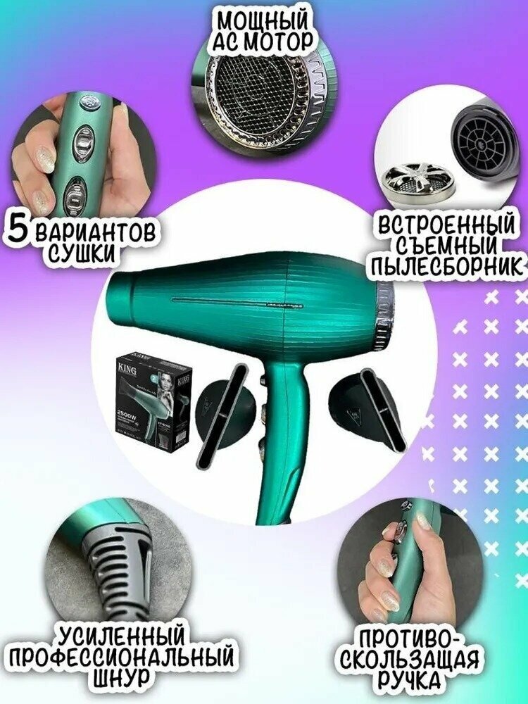 Купить Профессиональный салонный Фен для волос/уход за волосами/для укладки и сушки волос/насадка концентратор,диффузор/с функцией ионизации/домашний/зеленый