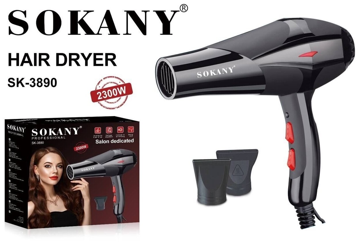 Профессиональный фен с 2 насадками для волос BE BEAUTIFUL / Супер мощность 2300 Вт /Подача горячего и холодного воздуха /SK-3890/Черный интересное: