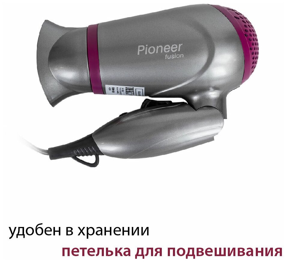 Фен PIONEER со складной ручкой и насадкой-концентратором, 2 скорости, 2 температурных режима, 1400 Вт интересное: