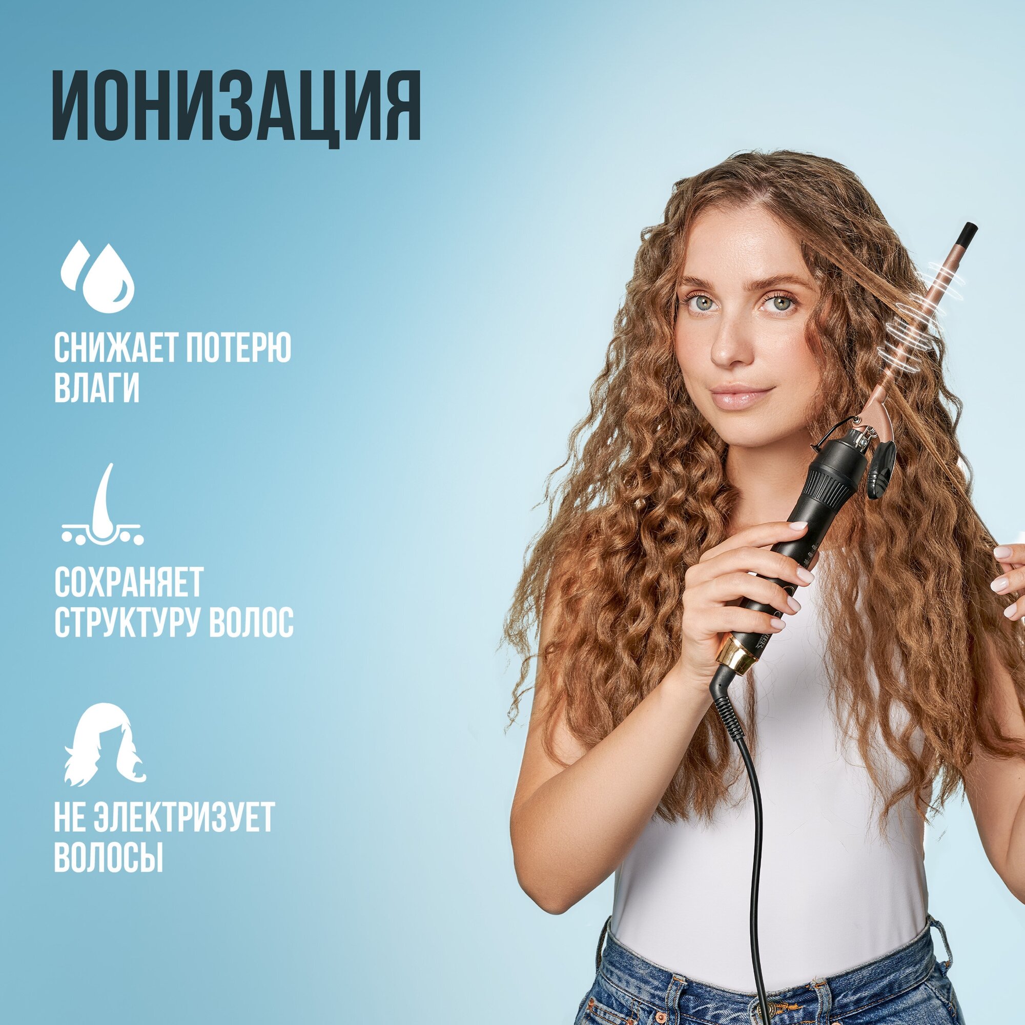 Быстро нагревается. Очень удобно, когда утром торопишься. Кудряшечки мелкие, на длинных волосах очень хорошо смотрится.