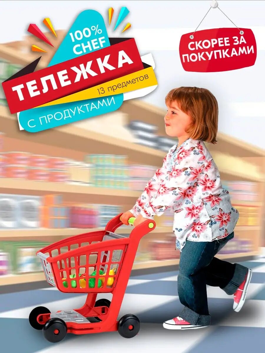 Тележка с продуктами Ecoiffier 13 предметов, 41,5*29,5*41,5 см, 100% Chef