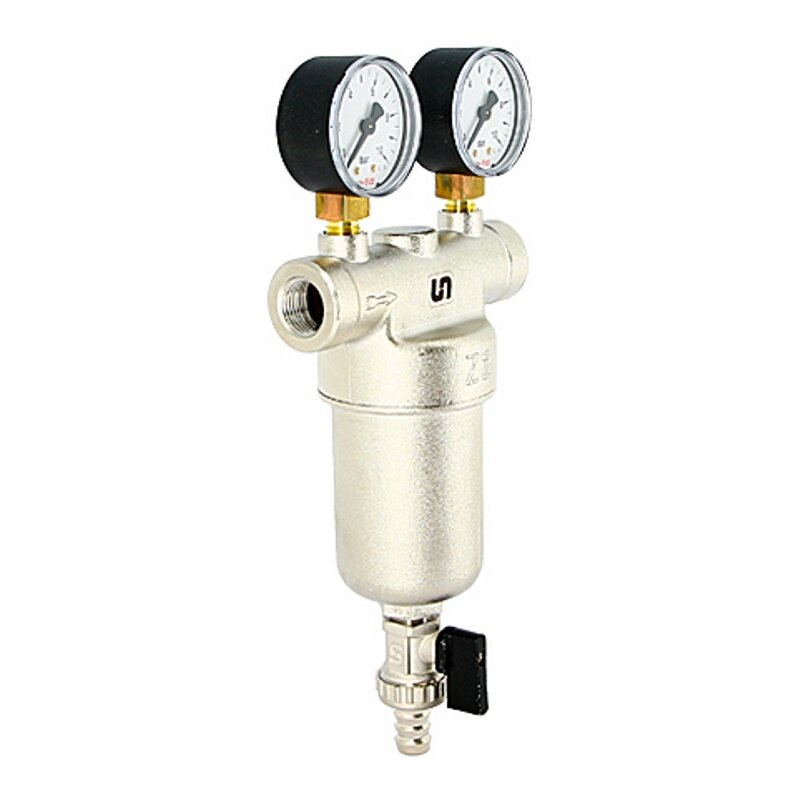 Фильтр промывной Uni-Fitt ВВ 1" со сливным шаровым краном и 2 манометрами, 300 мкм, никелированный интересное: