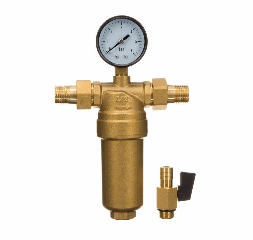Фильтр самопромывной 1/2" НР с манометром, для горячей воды, металический корпус TIM интересное: