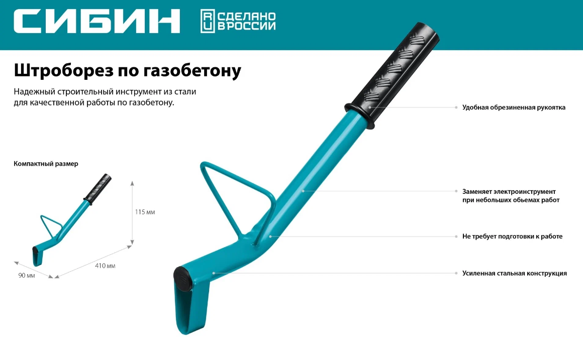 Строительный штроборез по газобетону тип U, нож 60х30 мм, длина 400 мм СИБИН 18542 интересное: