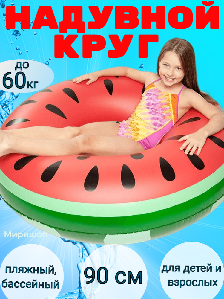 Пляжный, бассейный надувной круг для плавания Красный Арбуз Watermelon - 90 см интересное: