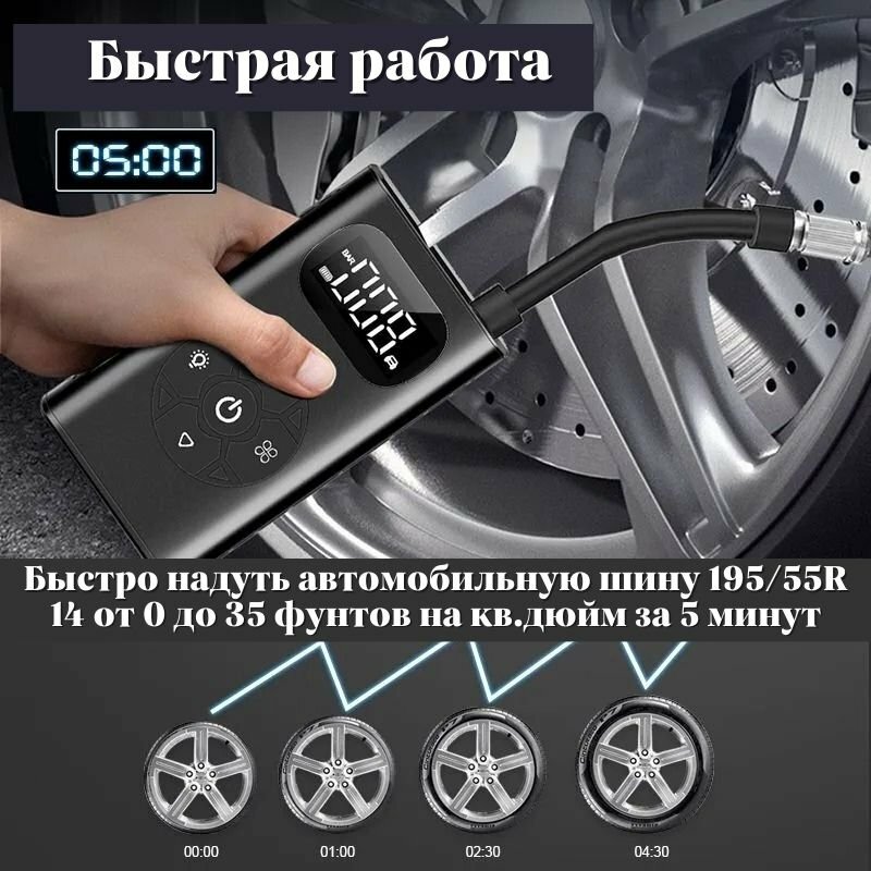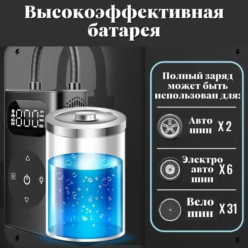Компрессор автомобильный воздушный электрический, ANYSMART аккумуляторный 6000 мАч для велосипеда и мотоцикла интересное: