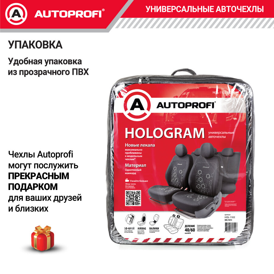 СохранитьКомплект чехлов на сиденья HOLOGRAM, материал жаккард HOL-1102 BK/WH интересное: