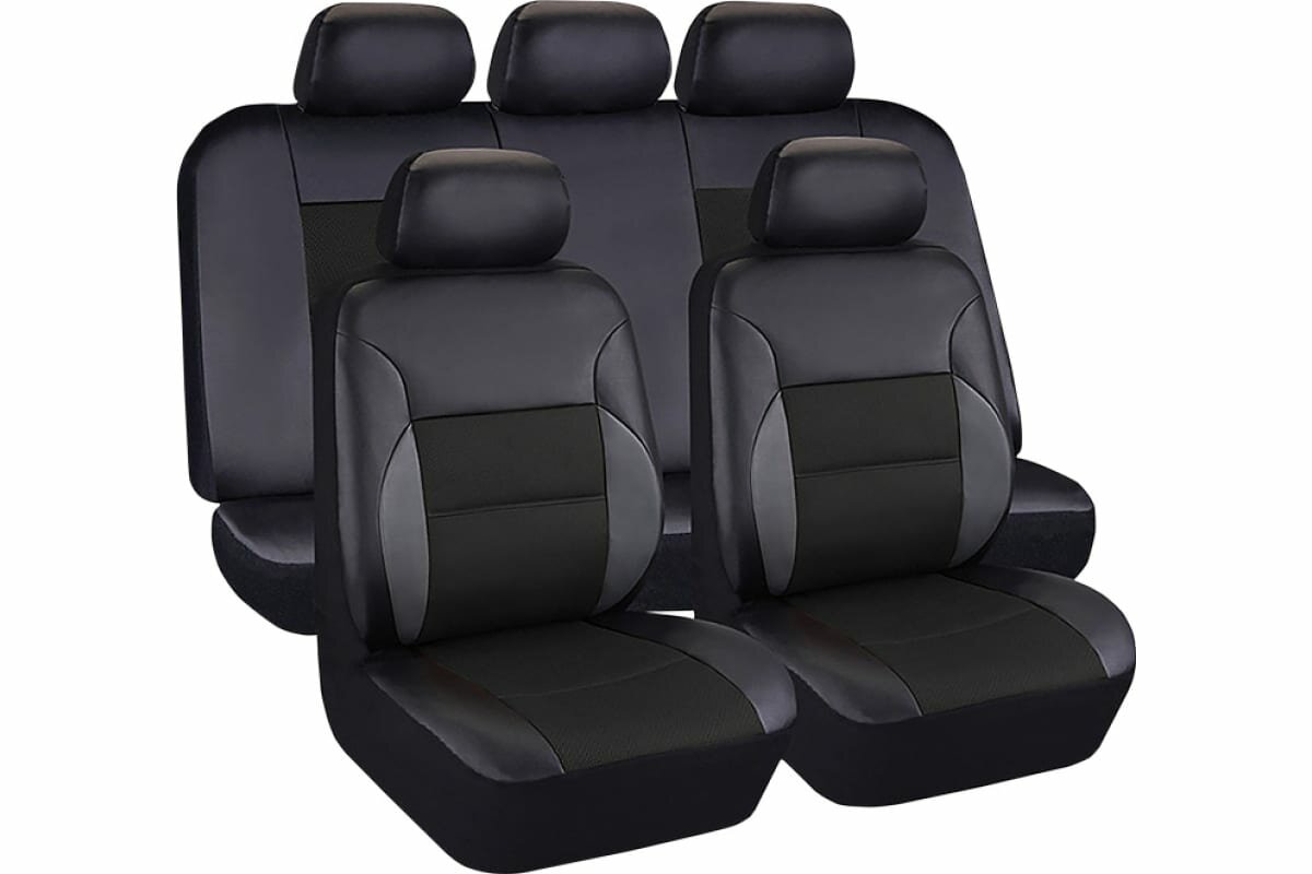 Чехлы универсальные на автомобильные сиденья, комплект "LUXURY", экокожа, черно-серые