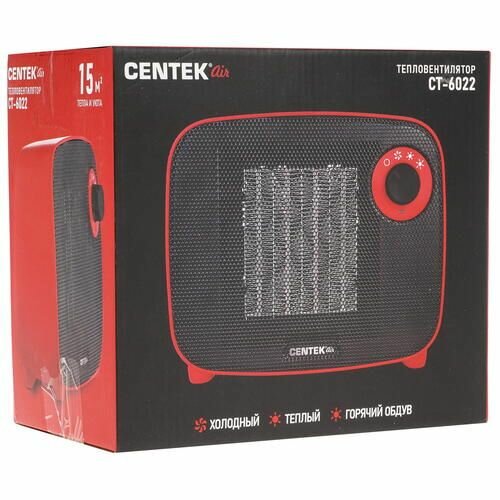 Купить Тепловентилятор Centek CT-6022, керамический, настольный, 1500 Вт, 15 м2, красный