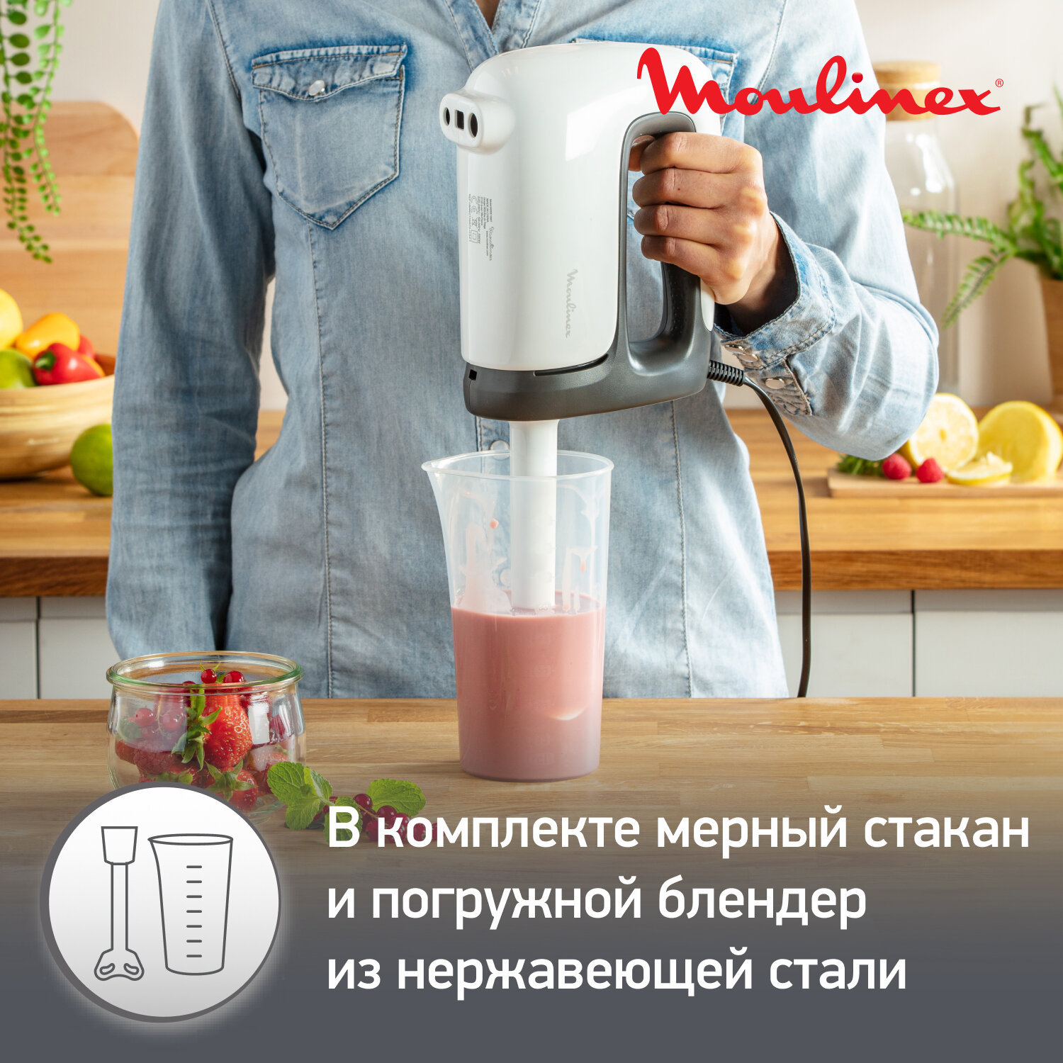 Миксер ручной Moulinex HM462110 белый/черный, 500 Вт, 5 скоростей, турбо режим,
