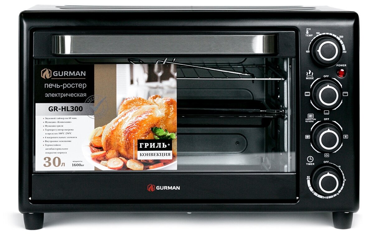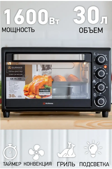 Мини-печь GURMAN GR-HL300, 30л, 1600Вт. интересное: