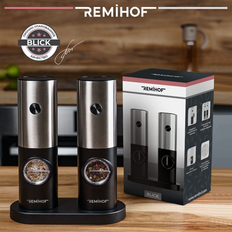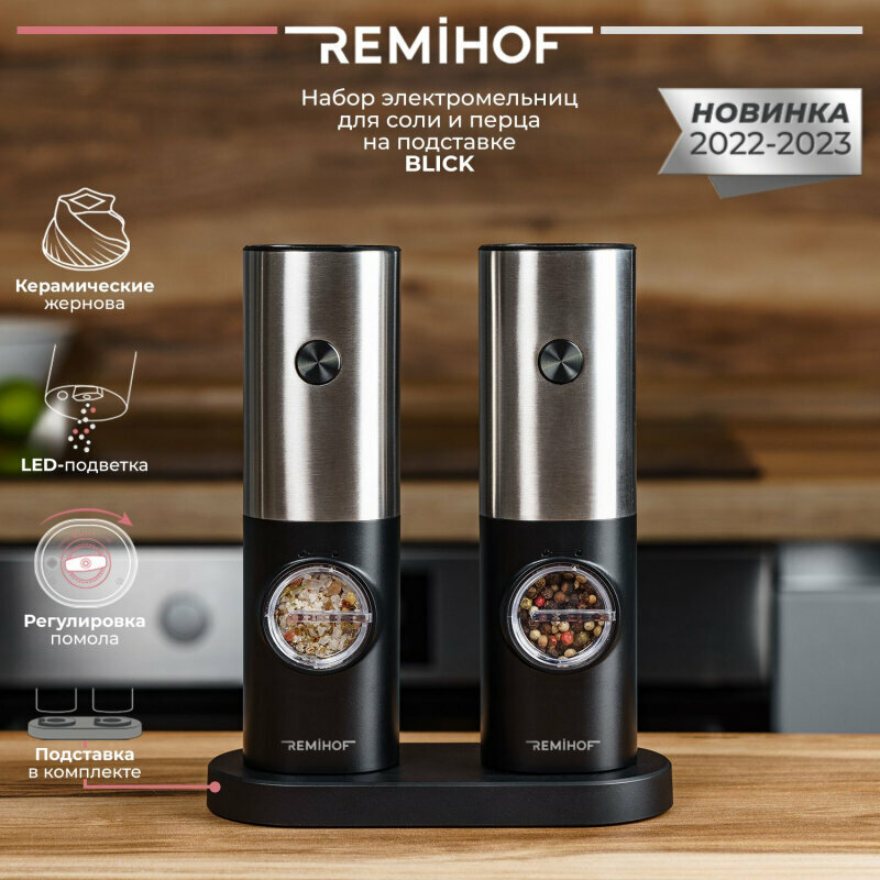 Набор электромельниц для перца и соли на подставке REMIHOF BLICK RMH-PPS-01 интересное: