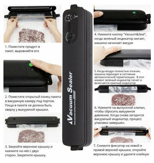 Вакуумный упаковщик домашний.Запаиватель пакетов электрический Vacuum sealer ручной без запаха.Вакууматор для долгого хранение продуктов мяса/овощей/фруктов и готовых блюд в свежести 10 пакетов в подарок.Порционной еды без запахов в холодильнике на кухне. интересное: