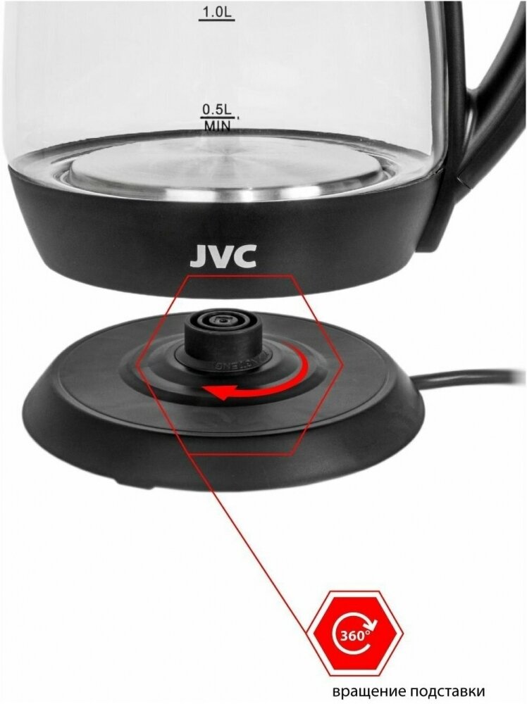 Чайник электрический JVC 1,7 л стеклянный с контроллером STRIX, автооткрывание крышки, светодиодная подсветка, индикация включения, 2200 Вт интересное: