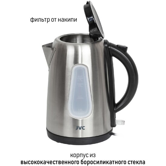 Чайник электрический JVC JK-KE1716 1,7 л, 2200 Вт, серебристый/черный