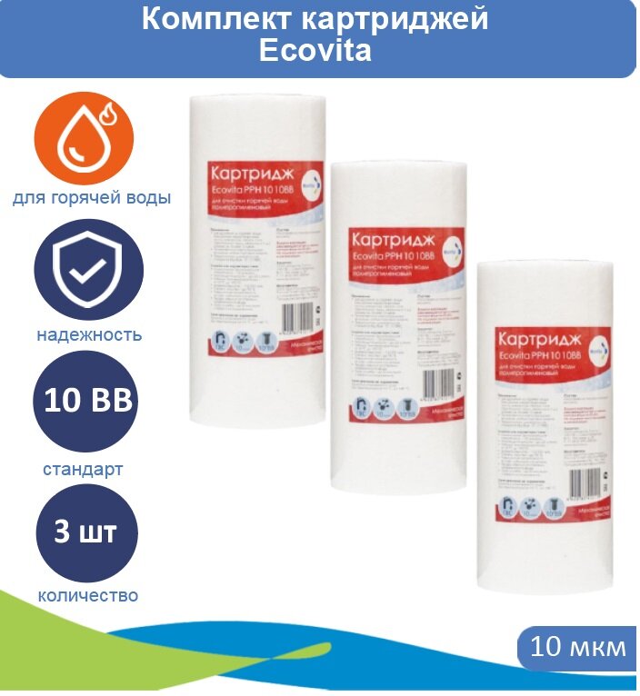 Картридж полипропиленовый Ecovita PPH 10 10BB для горячей воды - 3 шт. интересное: