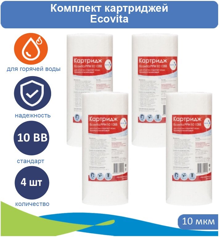 Купить Картридж полипропиленовый Ecovita PPH 10 10BB для горячей воды - 4 шт.