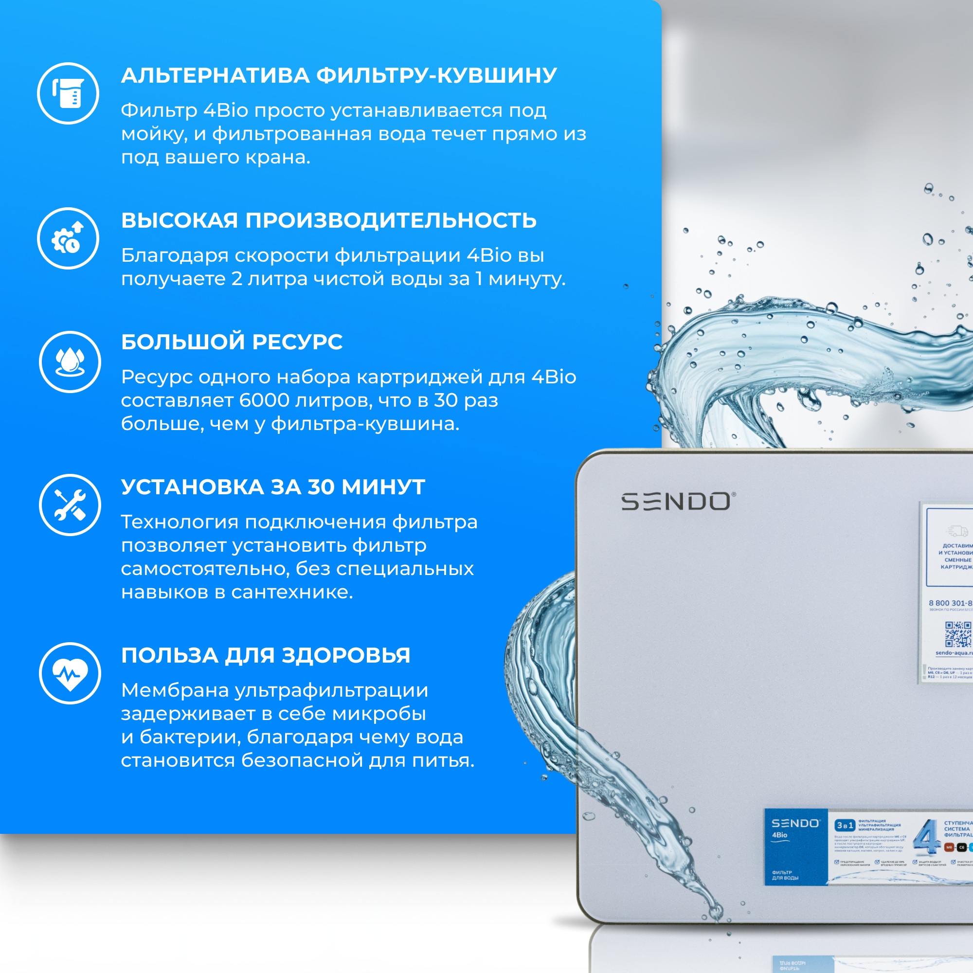 Проточный фильтр под раковину Sendo Aqua 4Bio интересное: