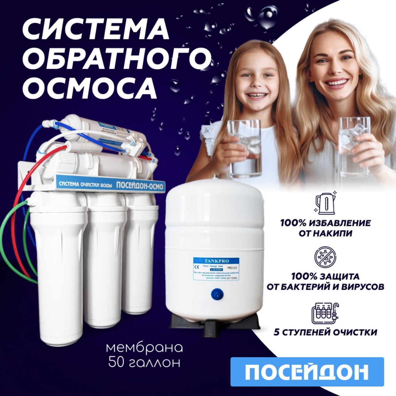 Фильтр под мойкой посейдон "посейдон-осмо" с металлическим баком интересное: