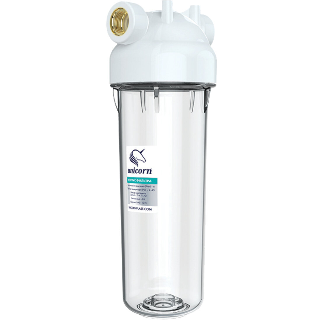 Фильтр для воды UNICORN магистральный, 10'', прозрачный корпус, 1/2 KSBP 12