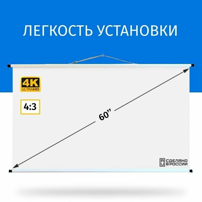 Экран для проектора Лама 120x90 см, формат 4:3, настенно-потолочный, ручной, цвет белый, 60 дюймов интересное: