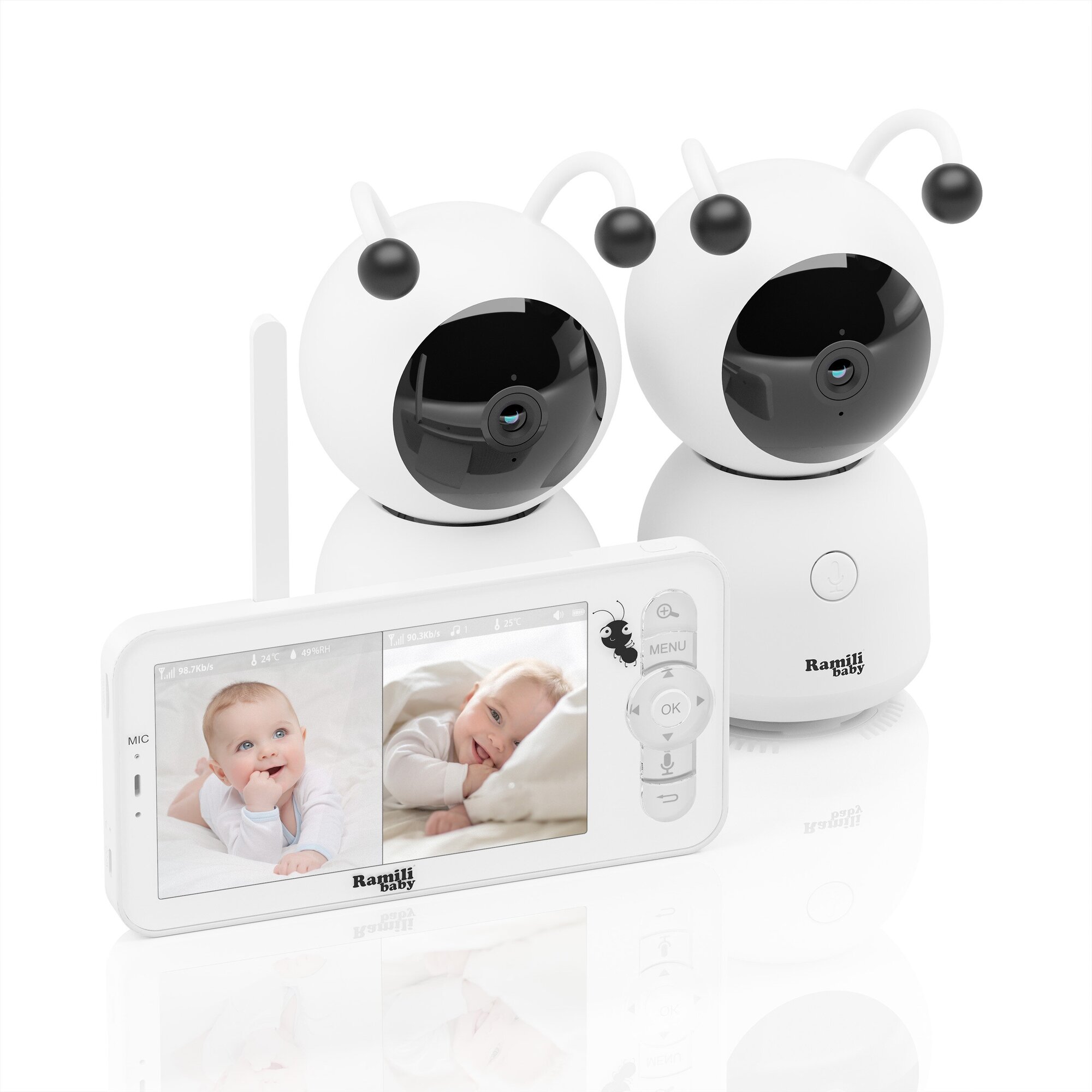 Видеоняня Ramili Baby RV100X2 Wi-Fi 2K с двумя камерами с креплением