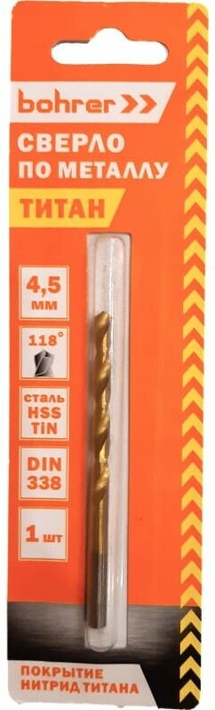 Сверло по металлу (1 шт; 4.5х47х80 мм; HSS-TiN; DIN 338 RN) BOHRER 31570451 интересное: