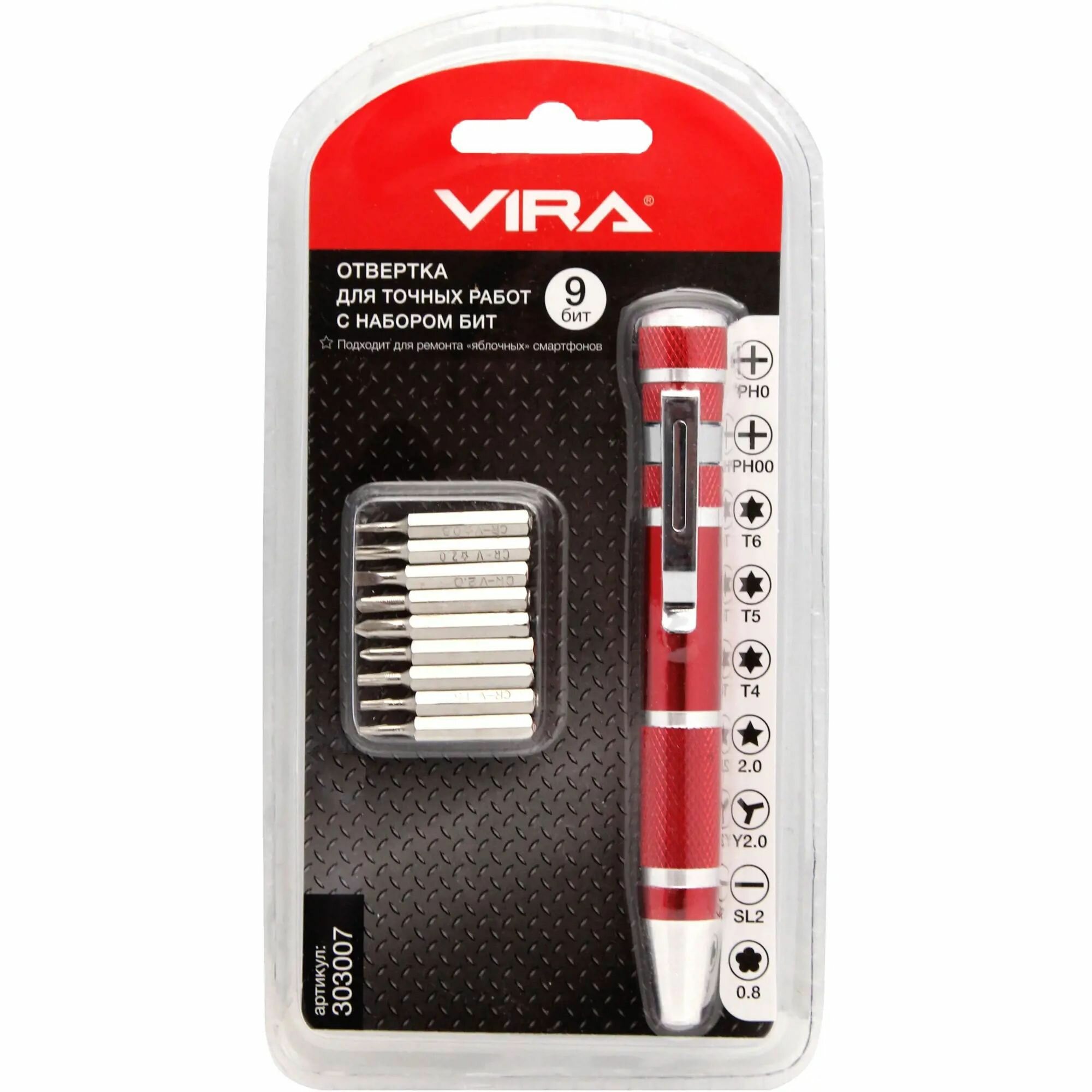 Отвертка для точных работ VIRA 303007 с набором бит, 9 штук