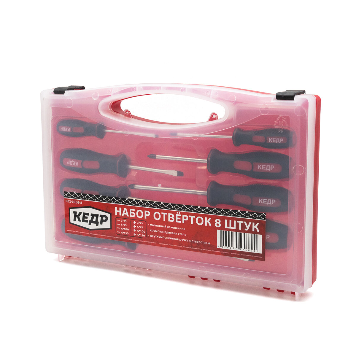 Купить Отвертки магнитные Кедр, двухкомпонентная ручка, 8 шт