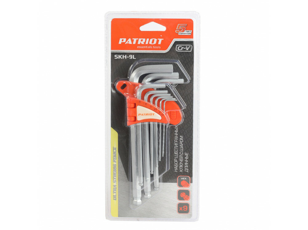 Набор ключей PATRIOT SKH-9L, шестигранные с шаром, длинные, 1,5-10мм, CRV, 9 шт 350002008