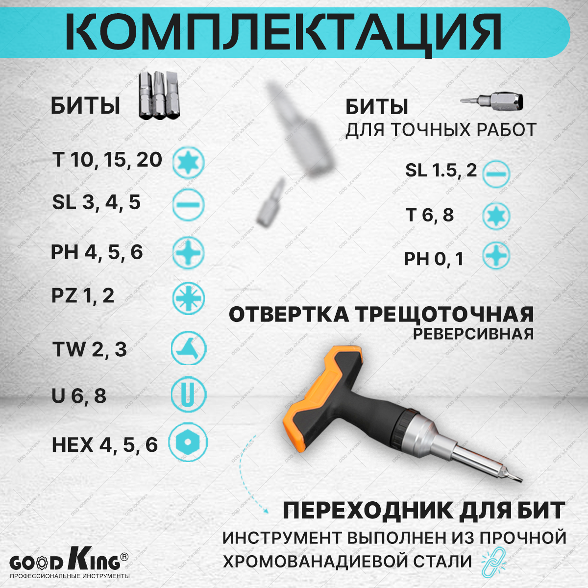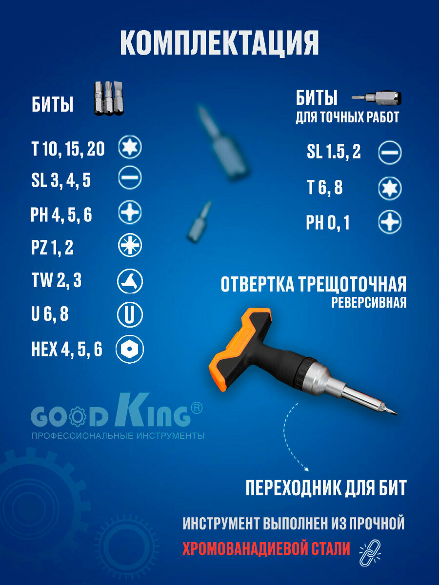 Набор отверток и бит 26 предметов GOODKING GKO-10026, набор инструментов, отвертка со сменными битами интересное: