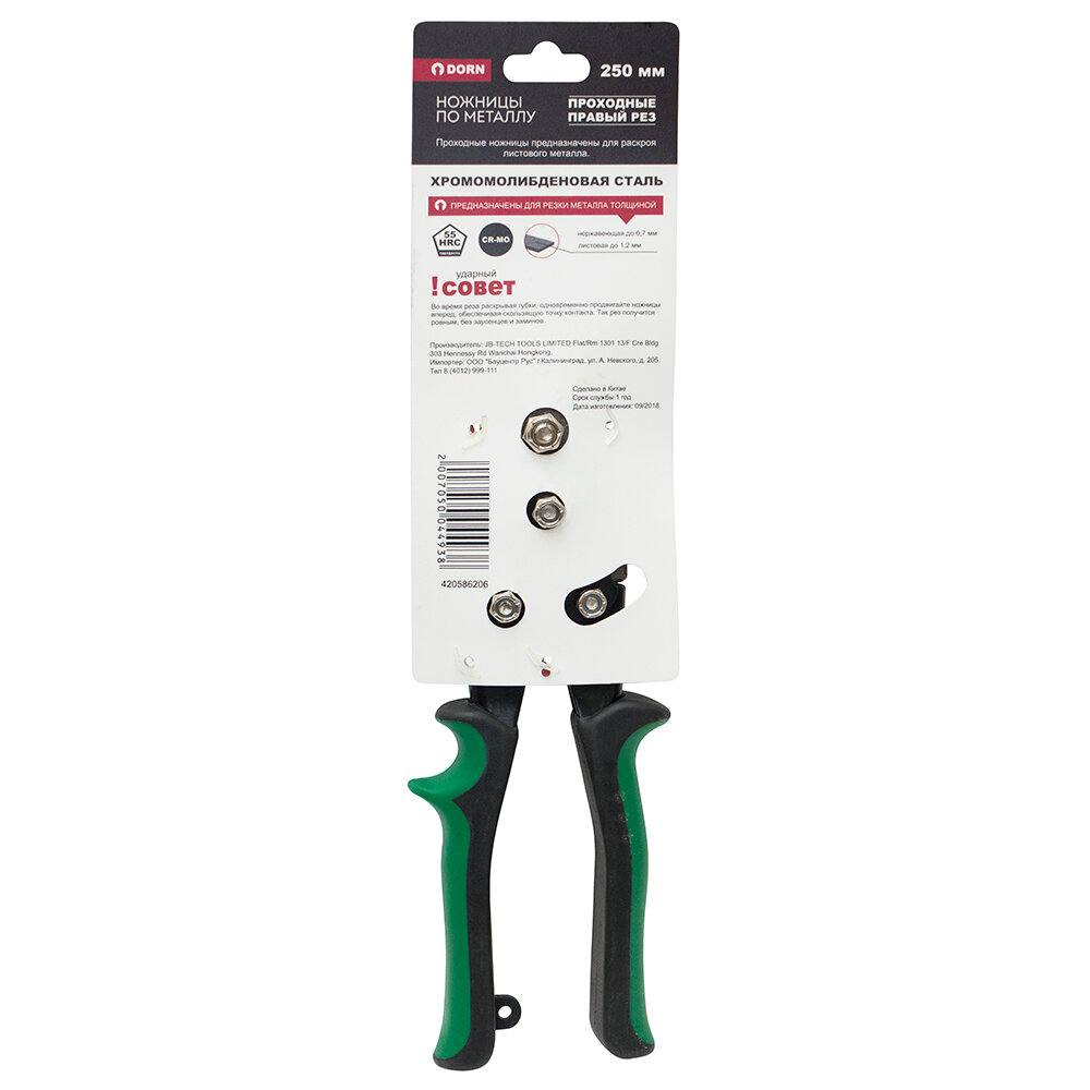 Ножницы по металлу DORN 250 мм проходные, правый рез, двухкомпонентные рукоятки интересное: