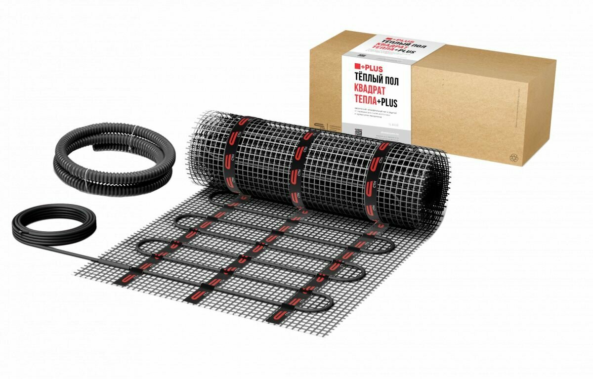 Теплый пол электрический под плитку Квадрат Тепла KM PLUS нагревательный мат 1 кв.м